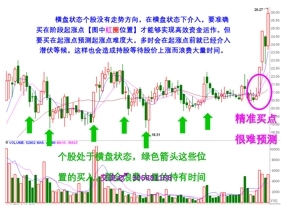 个股股价处于横盘状态时股价什么时候往上突破走出一波行情?要准确预测往上突破这一时间节点难度非常大。因此选择横盘没方向个股难以避免介入后要耐心等待股价方向往上发生转折,这可能需要耗费较长时间持股去等待。这是选择介入横盘个股潜伏等待的明显缺点。时间是具有金钱价值的,钱放银行中每存消耗一日都产生利息。钱放银行中利用消耗时间去产生利息产生的价值是很低廉的。人的一生以30岁开始投资70岁老去投资结束,为时40年以日为单位也就共14600日,每一日对于有限的生命消耗才是最珍贵的。拒绝资本无效运造成有效消耗生命的宝贵时间。除非你现已经赚到实现财务自由的财富体量!