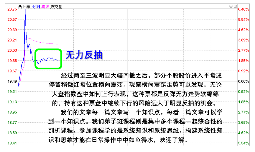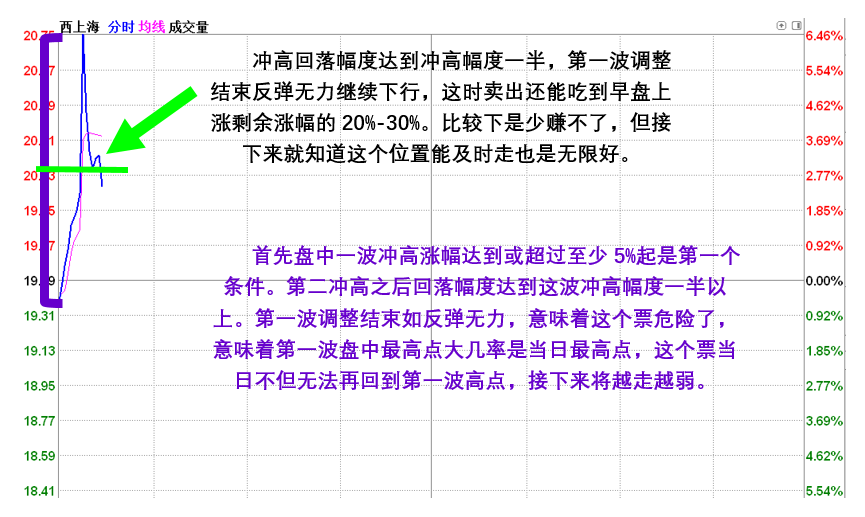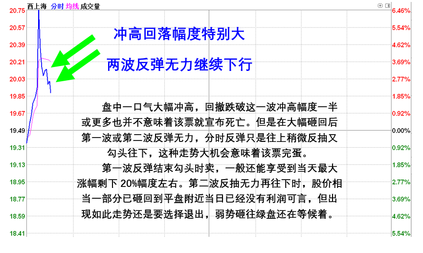 盘中股价强势拉升上涨的时希望股价继续上涨甚至上冲封涨停板,是每个人正常的期待与欲望,这种期待有实现的自然也有无法实现的。目标按自己预想预期上涨欣喜若狂高兴一番是一种情绪奖励。如果目标股票股价上冲没达到自己的目标就出现大幅回撤,盘面走势出现快速冲高回落分时线走势一波比一波低大又见顶痕迹时,该怎么办?对于这个问题你有没有自己总结形成一套成熟高效的分析判断方法和及时应对策略?涨时兴高采烈,跌时无比沮丧手足无措是对交易毫无帮助。千百回出现问题都是懊恼懊悔不能改变糟糕的现状。