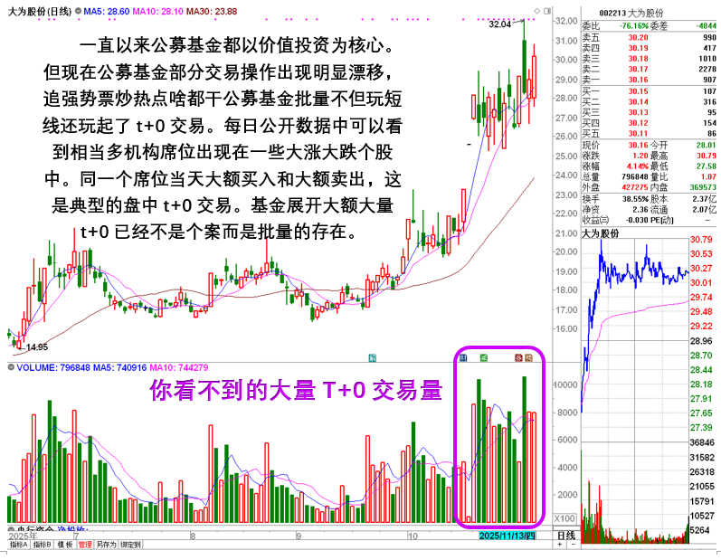 稍微观察和统计也可以发现,日内t+0占比较高的个股今天大涨马上大跌和今天大跌明天莫名其妙就大涨这两种现象。一根放量大阴线下跌,当你以为跌势仍将继续之时次日一根大阳线甚至涨停拉起。当你以为一根放量大阳上涨升势仍将继续之时,次日一根大阴线下跌甚至跌停砸盘。本涨涨跌跌是正常,但日内t+0占比较高的个股中大量频繁出现次日立即掉头现象特别明显。量化T+0利用策略出其不意的干预操作令普通投资者持续晕头转向,看空它就涨,看涨它就跌左右打脸面反复收割你。