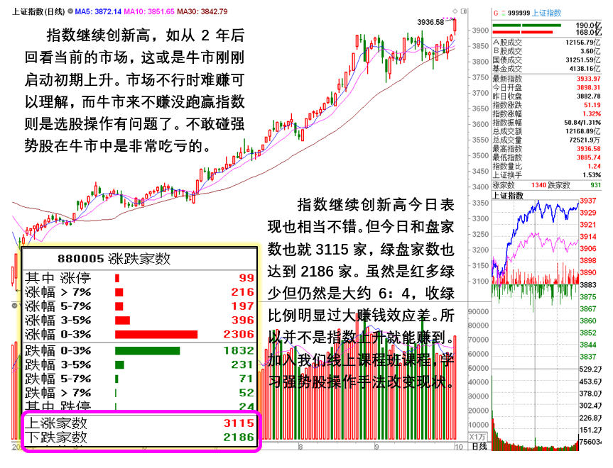分析近阶段市场环境别看指数涨的很好不断创新高,事实上近期的市场一直属于结构性市场。市场阶段真正表现出色的一直只有不到10%个股轮动炒作。约有20%个股陪属于跑状态也能跑成指数涨幅。横向震荡的毫无表现如死水一潭的多不胜数。结构性市场之下所买所拿的个股不对净是光赚指数不赚钱,这种现象已经维持了三个月后面预期仍将如此。