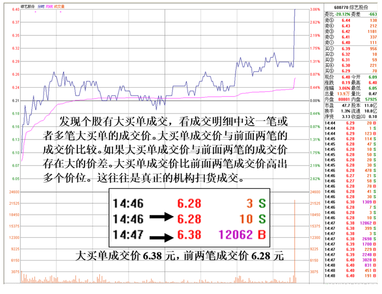 四,看盘中大买单单笔成交情况
