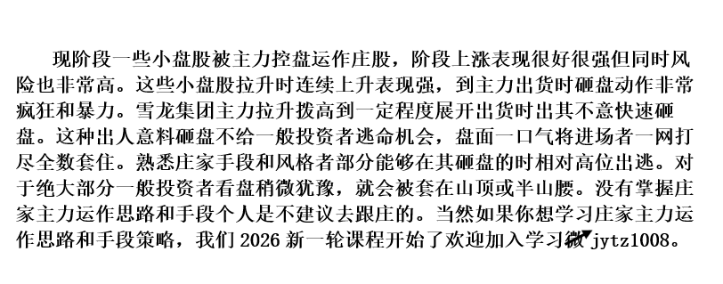 有利的地方就有作弊甚至违法违规行为出现。A股市场从诞生到发展至今30余载,早期2005年之前时期庄家横行霸道操纵股价如家常便饭。2005年之后至2015年监管监管趋严坐庄行为大为收敛。近十年科技发展大数据监控对于A股坐庄行为监管监控甚为严格。至当下控盘坐庄几乎行为虽然没有灭绝但已经屈指可数寥。A股5400余家上市公司中,单个机构主力控盘20%以上流通筹码坐庄品种百个之内。因此当下去寻找庄家高控盘个股寻为目标找机会已不合时宜。数量少,机会少,庄股风险高这是不合时宜的原因。